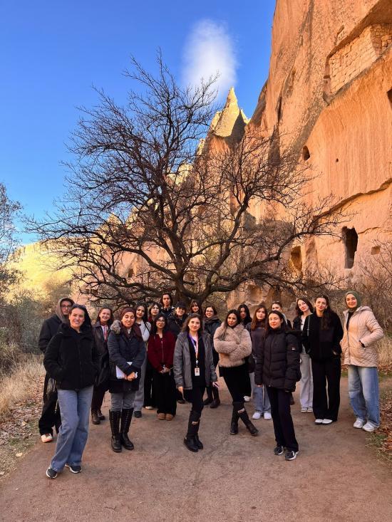 Turizm Topluluğu Akademik Danışmanları Arş. Gör. Rümeysa Unat ile Profesyonel Turist Rehberi Arş. Gör. Büşra Yamangil tarafından düzenlenen etkinlik kapsamında Kapadokya’nın önemli turistik destinasyonları ziyaret edildi. Etkinlikte öğrenciler; Zelve Açık Hava Müzesi, Paşabağları Ören Yeri, Devrent Vadisi ve bölgenin geleneksel el sanatlarının yaşatıldığı çömlek atölyesinde incelemelerde bulundu.